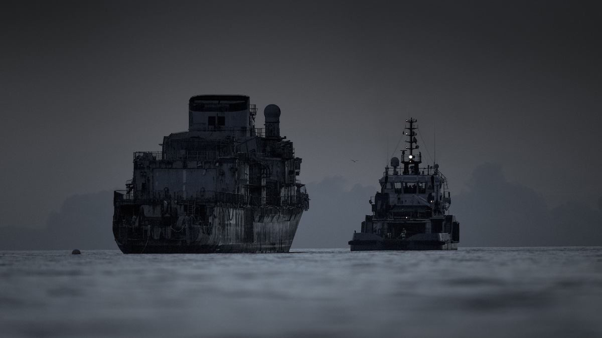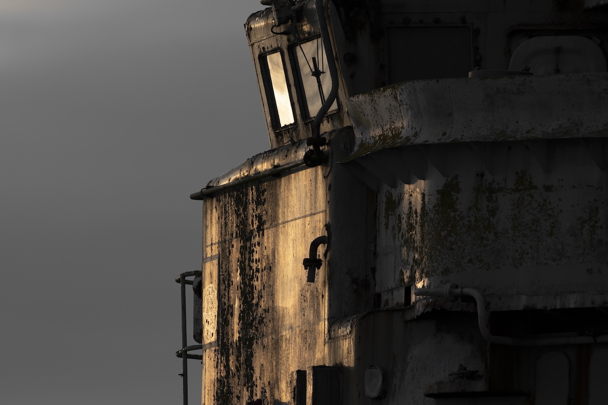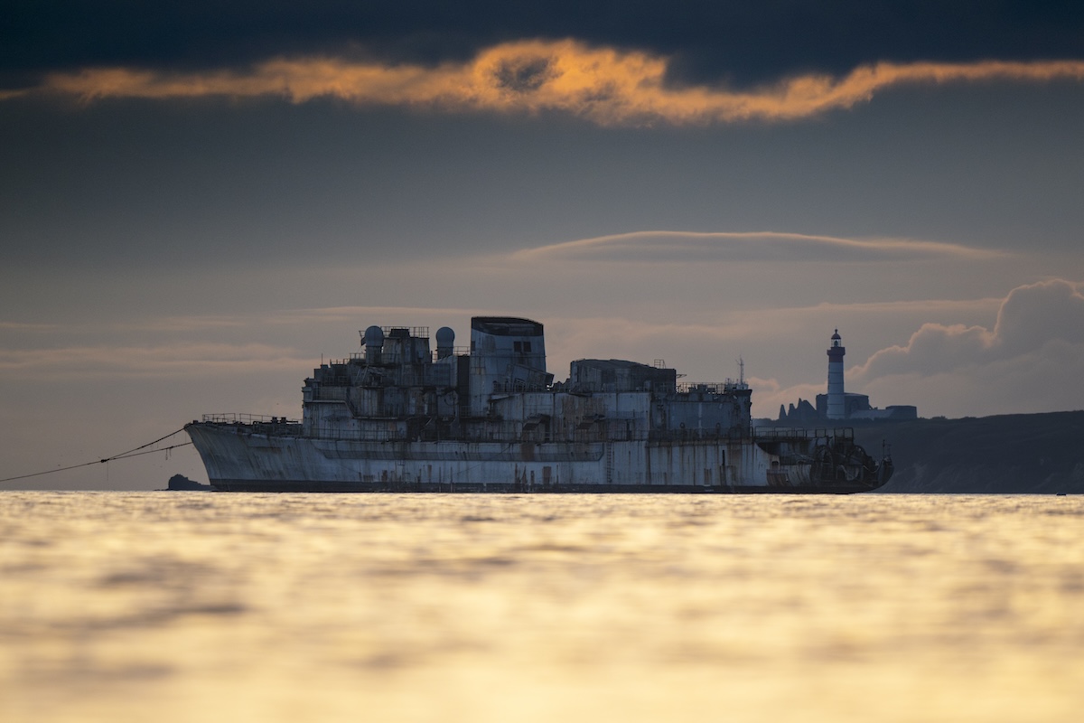 « Terminé barre et machine » résonne encore dans le sillage de ce navire au crépuscule de sa vie. Barre au « Un – Huit – Zéro », Bordeaux sera le dernier azimut d’une navigation lente, sans âme et anonyme. Le remorqueur civil Alizé surveille sa prise de guerre depuis l’école Navale où la coque croupissait depuis dix ans avant d’être fixée sur son sort…