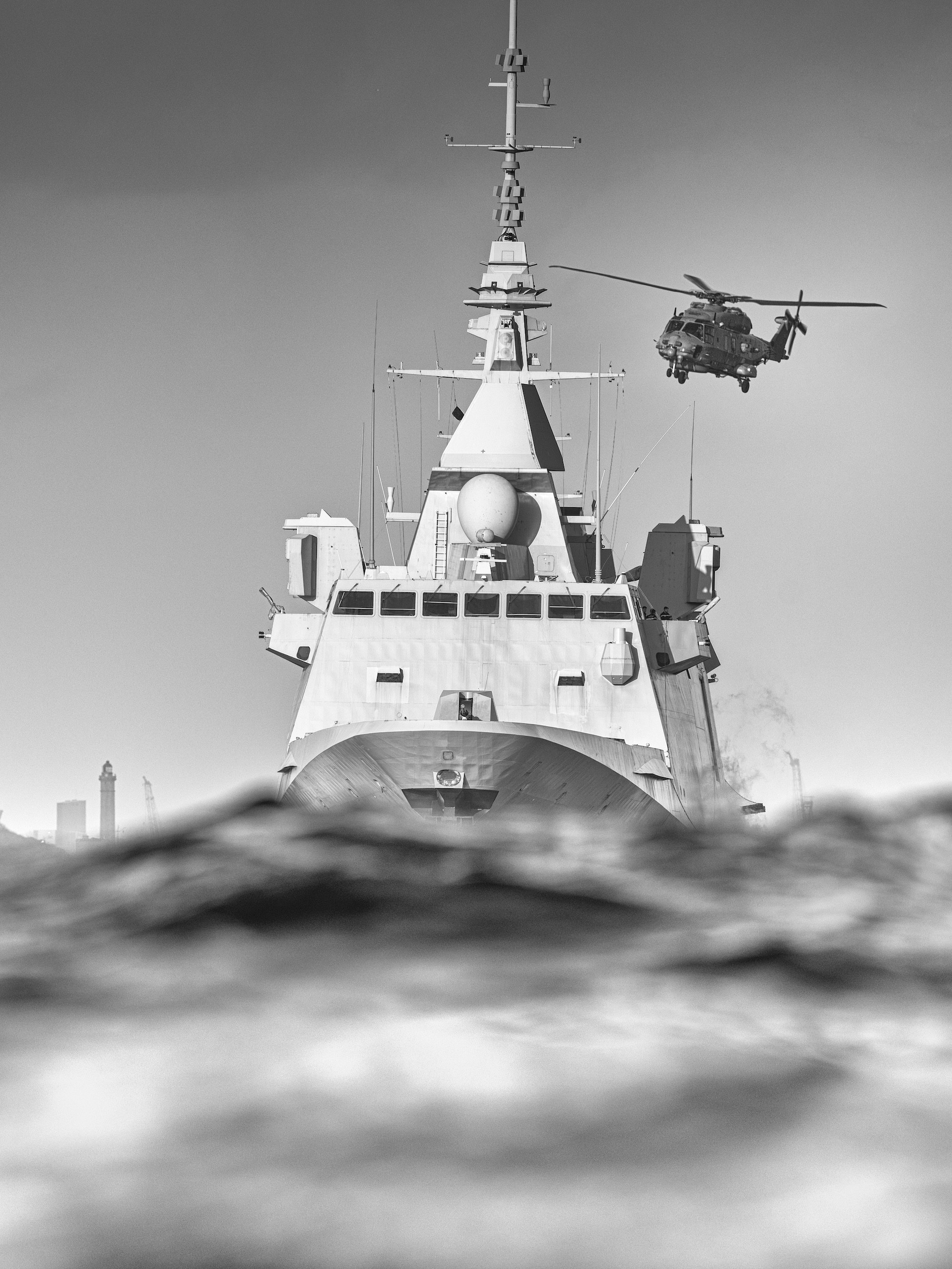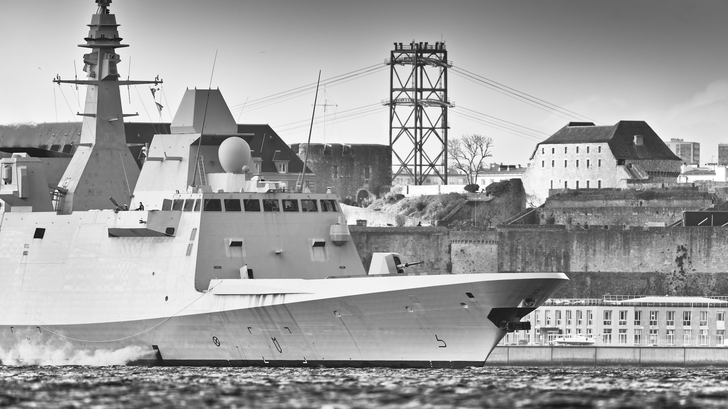 Des bateaux de guerre, le château du bas de la ville en a vu passer des milliers depuis l’époque de la Marine du Roi. Le temps de franchir la passe de la digue sud, et la FREMM recrache, dans un flot de vapeur, le pilote maritime sur bâbord. Cette vapeur, très esthétique pour la photographie, est en réalité un outil qui accroît la furtivité de l’unité.