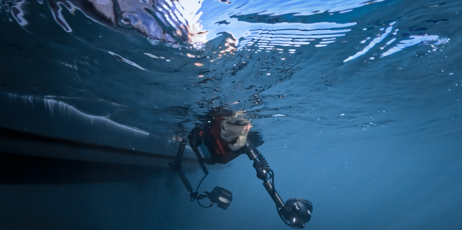 Il faut dire que cette technique de prise de vue est particulièrement compliquée. Elle réclame une approche méticuleuse et beaucoup d’huile de coude et de patience pour nettoyer la bulle, qui se recouvre très vite de gouttes. La mise au point se révèle par ailleurs capricieuse ! L’utilisation de flashs sous-marins permet d’harmoniser les hautes et basses lumières (venant du ciel et des fonds marins). Grâce à ces jeux de contraste, la matière se trouve densifiée, et il devient alors passionnant de jouer avec la chromie, la profondeur de champs… La précision est de mise pour obtenir un certain piqué sur le sujet et une approche 3D immersive.