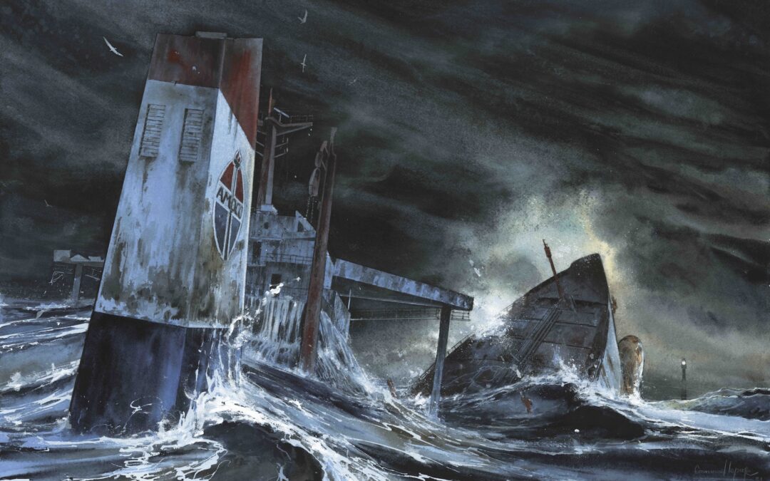 Amoco Cadiz. Perspective du naufrage gluant sous le regard désabusé du phare de l’Île Vierge. Glaçant, exaltant, exceptionnel. ©Emmanuel Lepage