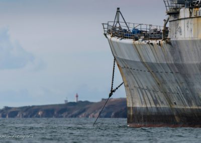 Article OF « Cet article est paru dans un contexte de succession de tempêtes hors normes au cours de l’hiver 2014 sur la pointe finistère. La photo repérée par une journaliste à bien senti le « potentiel » de la combinaison d’un facteur climatique hors norme, et d’un sujet aussi émouvant que la coque de la Jeanne assaillie nue dernière fois par une mer dantesque… à quai ! C’est la première fois que je découvrais qu’une photo pouvait être vue et relayée plusieurs centaines de milliers de fois le temps d’un week-end … »