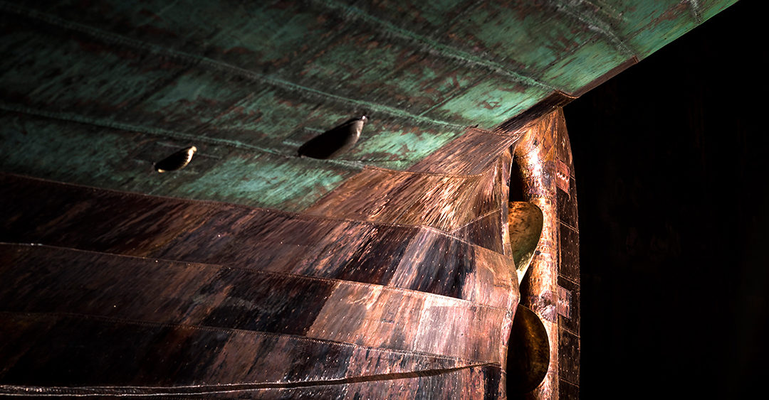 La série sur les carènes en forme de radoub continue avec cette fois-ci une légende faite de bois et de cuivres, la goélette à hunier la « Belle Poule » qui a pris place dans l’enceinte de la vielle base sous-marine allemande à Brest. Opération délicate, car outre le programme d’entretien classique, la poupe du bateau à subi un changement de la poutre d’étembeau, pièce maîtresse qui montrait des signes de faiblesses, une première ! Le placage de la carène en cuivre a été remplacé sur la partie arrière, ce qui mélange bois, cuivre doré et vielle cote à cote, pour une série photo que l’on peut qualifier d’intime 🙂
