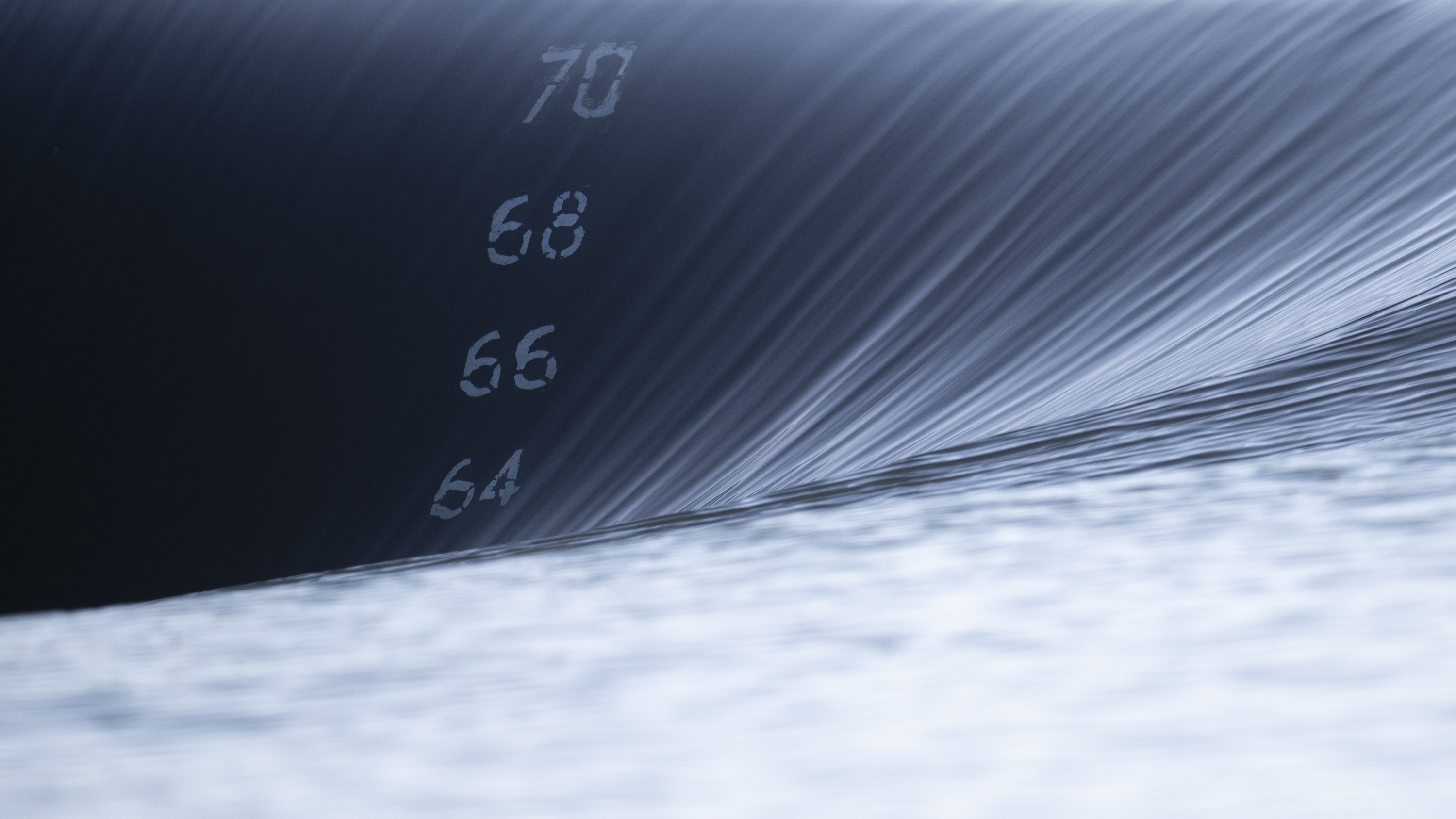 Mer d’Iroise, pétole propice à des ambiance maritimes particulières. Le sous-marins d’attaque « Améthste » de classe Rubis glisse à la surface. Il fait ce qu’il sait le mieux faire en enveloppant sa carcasse d’eau salée d’écoulements laminaires sous l’action de sa discrète propulsion… Blanc Bleu #1 existe sur le SNLE « Triomphant » et trône aujoud’hui dans le bureau du ministre des Armées…